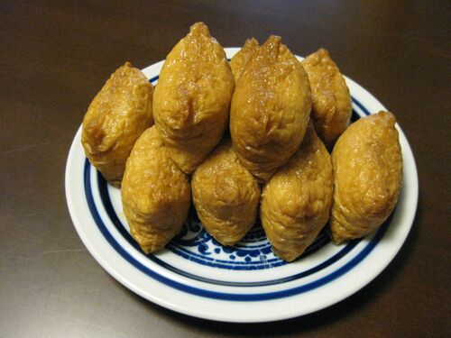 今日は初めていなり寿司を作ってみた。とはいっても、スーパーで買ってきた味付け油揚げにすし飯を詰めるだけなので、とても簡単。 ↓ 10個作った。中身をたっぷり詰め込んだので、かなりでかい。 売っているものと変わらない美味しさ。娘も好物なので2個…