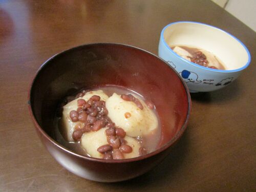 おやつにおしるこを作って食べました。缶詰のゆであずきを使ったので超簡単。水と塩少々を加えて火にかけ、焼いたおもちを入れるだけ。 甘くて美味しい。また作ろう。